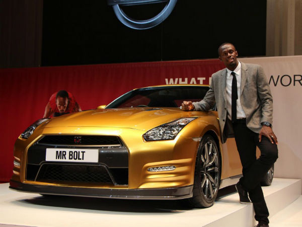 உலகின் சிறந்த ஸ்போர்ட்ஸ் கார்களில் ஒன்றான நிசான் ஜிடி-ஆர் கார்தான் உசேன் போல்ட் பெயரில் ஸ்பெஷல் எடிசன் காராக தயாரிக்கப்பட்டிருக்கிறது. தங்க நிற பெயிண்டிங் செய்யப்பட்டுள்ள இந்த காரின் உட்புறத்தில் உசேன் போல்ட்டின் ஆட்டோகிராப் போடப்பட்ட ஆக்சஸெரீஸ்கள் இடம்பெற்றுள்ளன.