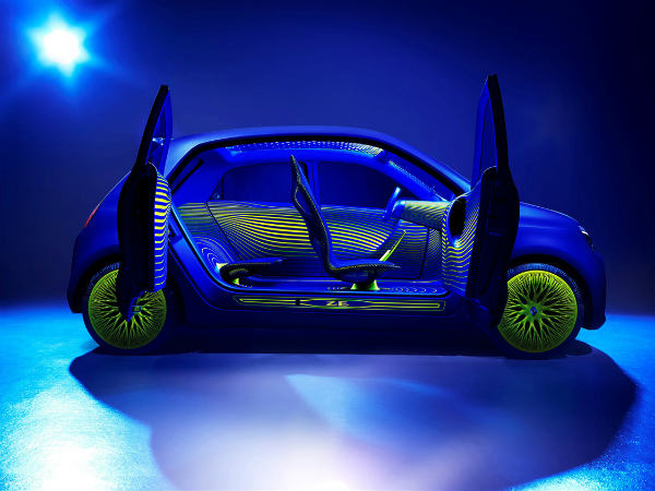 டிவிங்கோ காரின் அடிப்படையாகக் கொண்ட இந்த கான்செப்ட் கார் நகர்ப்புறத்துக்கான சூப்பர் மினி காராக இருக்கும். சூப்பர் மினியாக இருந்தாலும் அதிக இடவசதி கொண்டதாக வடிவமைக்கப்பட்டிருக்கும் இந்த கார் முழுக்க முழுக்க ஓர் எலக்ட்ரிக் கார். இத்தாலியில் சமீபத்தில் நடந்த ஒரு கண்காட்சியில் இந்த சூப்பர் மினி கான்செப்ட்டை பார்வையாளர்களுக்கு கண்களுக்கு விட்டது ரெனோ. எல்இடி விளக்குகளின் துணையுடன் ஜொலித்த இந்த கான்செப்ட் காரை நாமும் ஒரு பார்வை விடலாம் வாருங்கள்.