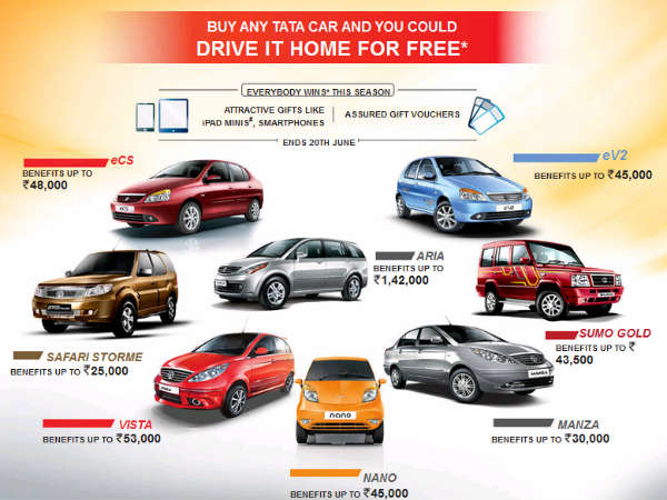 இந்த நிலையில், கார் விற்பனையை அதிகரிக்கும் வகையில், சிறப்பு சலுகை திட்டங்களை டாடா மோட்டார்ஸ் வழங்குகிறது. நானோ முதல் ஆரியா வரை அனைத்து கார்களுக்கும் சலுகைகளை அறிவித்துள்ளது.
