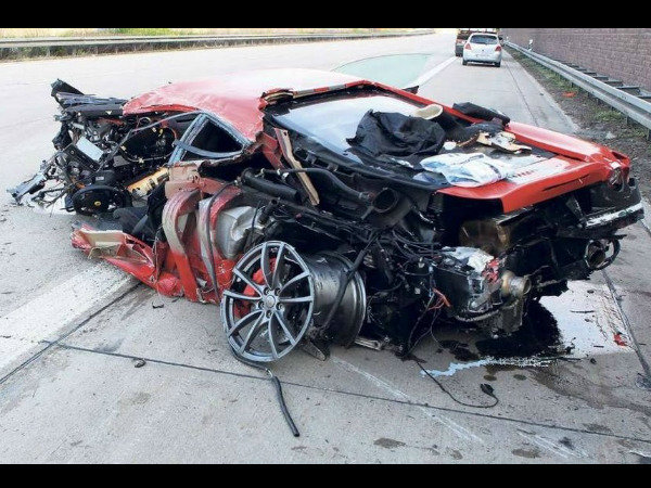 300 கிமீ வேகத்தில் சாலை தடுப்பில் மோதி சுக்கு நூறான ஃபெராரி கார்!