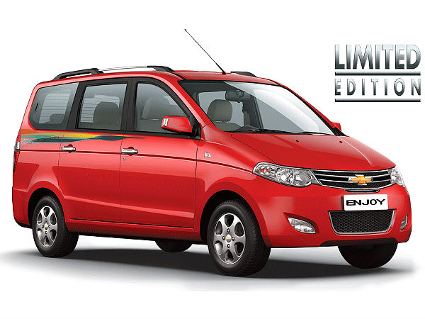 இந்தியாவில் விற்பனைக்கு கொண்டு வரப்பட்டு ஓர் ஆண்டு நிறைவுபெறுவதை கொண்டாடும் விதத்தில், செவர்லே என்ஜாய் எம்பிவி காரின் ஸ்பெஷல் எடிசன் மாடல் அறிவிக்கப்பட்டுள்ளது. புதிதாக உருவாகியுள்ள காம்பெக்ட் எம்பிவி மார்க்கெட்டில் மாருதி எர்டிகாவுக்கு அடுத்து சிறப்பான மாடலாக வலம் வருகிறது செவர்லே என்ஜாய்.