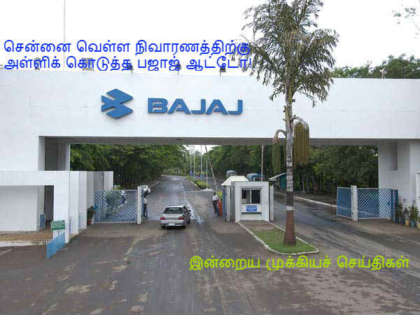 சென்னை வெள்ள நிவாரணத்திற்கு ரூ.10 கோடி நிதி வழங்கிய பஜாஜ் ஆட்டோ!