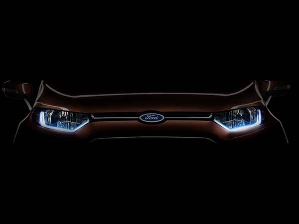 புதிய ஃபோர்டு ஈக்கோஸ்போர்ட் எஸ்யூவியின் புதிய டீசரில் புதிய மாடல் எல்இடி பகல்நேர விளக்குகளுடன் வருவதை மட்டும் உறுதிப்படுத்துவதாக இருக்கிறது. முகப்பில் அதிக மாற்றங்கள் இருக்காது.