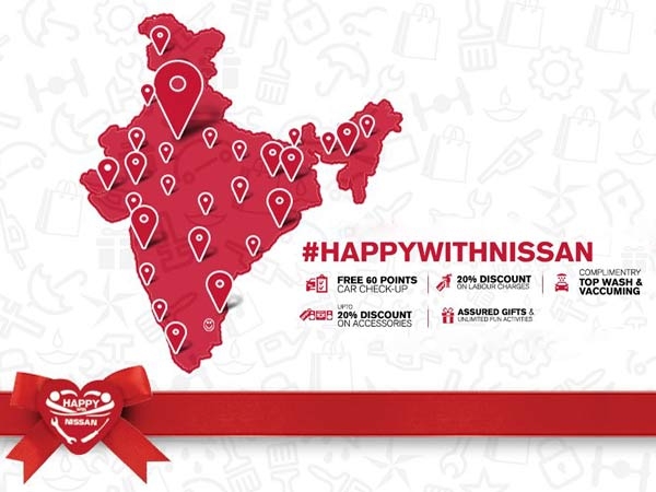 'ஹேப்பி வித் நிஸ்ஸான்' சர்வீஸ் முகாம், நவம்பர் 19-ஆம் தேதி துவங்கி, நவம்பர் 28-ஆம் தேதி வரை நடைபெற்று வருகின்றது. இந்த முகாம்கள் நாடுமுழுவதும், 120 நகரங்களில் பரவியுள்ள, 140 சர்வீஸ் செண்டர்களில் நடத்தபடுகிறது.