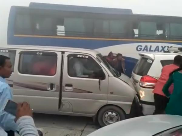 யமுனா எக்ஸ்பிரஸ் சாலையில் கார்கள் ஒன்றன்பின் ஒன்றாக மோதி பயங்கர விபத்து!