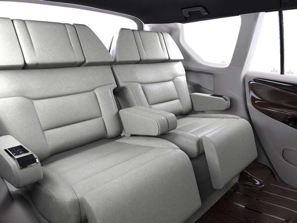 உட்புறத்தில்தான் அதிக மாற்றங்கள் செய்யப்பட்டுள்ளன. பின்புறத்தில் இரண்டாவது மற்றும் மூன்றாவது இருக்கைகள் நீக்கப்பட்டு, இரண்டு சொகுசான புஷ் பேக் இருக்கைகள் பொருத்தப்பட்டுள்ளன. தாராள இடவசதியுடன், உயர் தர லெதர் கவர் செய்யப்பட்டிருப்பதால், மிக சொகுசான பயண அனுபவத்தை இந்த இருக்கைகள் தரும்.