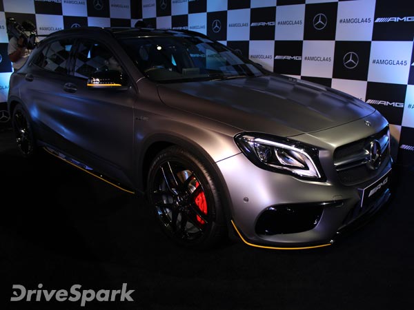ஜெர்மன் கார் தயாரிப்பு நிறுவனமான மெர்சிடிஸ் ஏஎம்ஜி ஜிஎல்ஏ 45 காரை இந்தியாவில் ரூ. 77.85 லட்சம் (எக்ஸ்-ஷோரூம் இந்தியா) விலையில் வெளியிட்டுள்ளது.