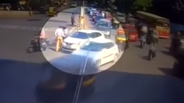 மகாராஷ்டிரா மாநிலம் தானேவில் உள்ள டீன் ஹாத் நகா பகுதி, ஞாயிற்றுக்கிழமை என்றாலும் கூட நேற்று (டிசம்பர் 9) மிகவும் பரபரப்பாக இயங்கி கொண்டிருந்தது. அப்போது அங்கு சிக்னலை சற்றும் மதிக்காமல், தவறான பாதையில் வெள்ளை நிற கார் ஒன்று வந்தது.