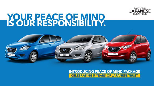 டட்சன் பிராண்டு இந்தியாவில் அறிமுகம் செய்யப்பட்டு 5 ஆண்டுகள் நிறைவடைவதை கொண்டாடும் விதத்தில், 'Datsun Pease Of Mind' என்ற புதிய ஆஃபர் திட்டம் அறிவிக்கப்பட்டுள்து.இதன்படி, டட்சன் ரெடிகோ, கோ மற்றும் கோ