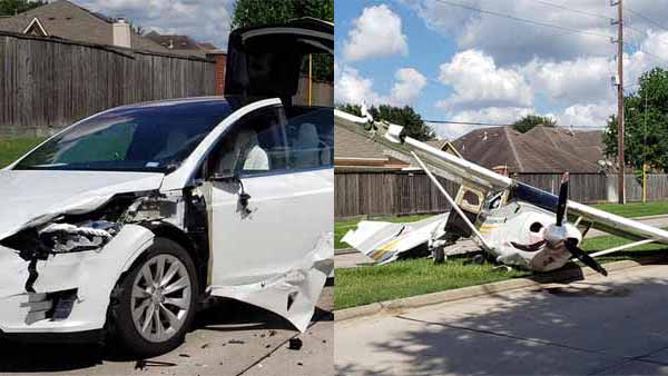எனவே சாலையிலேயே விமானத்தை லேண்ட் செய்வதற்கான முயற்சியில் பைலட் ஈடுபட்டார். ஆனால் லேண்ட் ஆகும்போது, அங்கு பயணித்து கொண்டிருந்த டெஸ்லா மாடல் எக்ஸ் கார் ஒன்றின் மீது எதிர்பாராத விதமாக விமானம் மோதிவிட்டது.