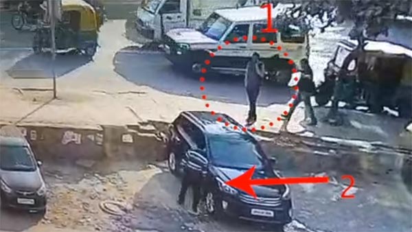 3 பேரில் முதலாவது நபர், காரின் டிக்கியின் அருகே நின்று கொண்டு, செல்போனில் பேசி கொண்டே அங்கும் இங்கும் நடமாடி கொண்டிருந்தார். அந்த நேரத்தில் இரண்டாவது நபர், டிரைவர் சீட்டிற்கு அருகே சென்று, 40 ரூபாய் மதிப்பிலான தாள்களை, முன்பக்க சக்கரத்திற்கு அருகே வேண்டுமென்றே சிதற விட்டார்.