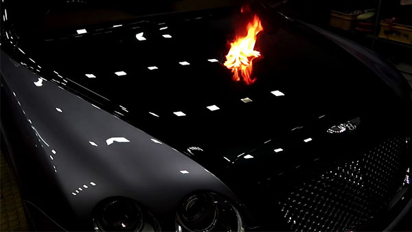 இதனை நிரூபிக்கும் விதமாகத் தான் இந்த வீடியோவில், விலையுயர்ந்த பென்ட்லீ கார் மீது பெட்ரோல் ஊற்றி அந்த இளைஞர் எரிக்கிறார். அவ்வாறு, கார் மீது பெட்ரோலை ஊற்றிய அவர், லைட்டர் மூலம் பற்ற வைக்கிறார். பற்றி எரிந்த அந்த தீ சிறிது நேரத்தில் அணைந்துவிட, தீ பற்றிய இடத்தை ஊழியர் ஒருவர் தண்ணீர் தெளித்து துடைக்கிறார். ஆனால், தீ பற்றிய இடத்தில், சிறு துளி கூட பாதிப்பில்லாமல் தப்பிக்கிறது. இவ்வாறு, வாக்ஸ் குறித்த பயன்பாட்டை விளக்கவே இந்த வீடியோவை அவர் காட்சிப்படுத்தி, பதிவிட்டுள்ளார்.