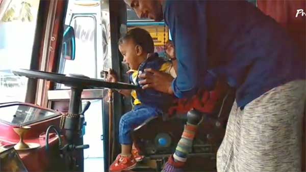 முதல் வீடியோவில், ஓட்டுநர் ஒருவர் பேருந்தை சிறிது வேகத்தில் செல்லுமாறு இயக்கிய பின்னர் கீழே இறங்குகின்றார். மேலும், அவர் ஒரு யானையை தன் பின்னால் நடக்கவிட்டு அழகு பார்ப்பதைப் போல் பேருந்தை தடவியவாறு அதன் முன் பக்கம் நடக்கின்றார். பின்னர், பேருந்தில் ஏறி அதனை நிறுத்துகின்றார்.