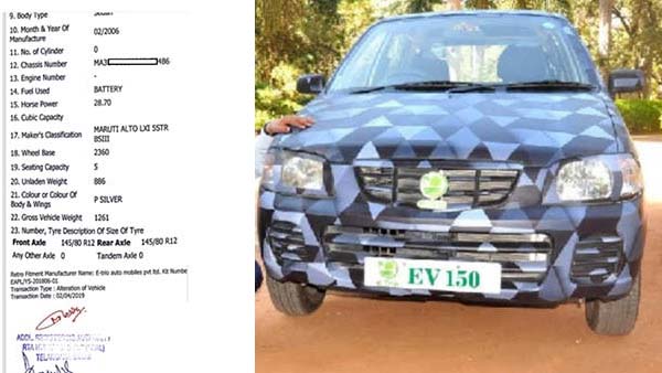 இதில், தற்போது ஆல்டோ காருக்கு மட்டும் ஆர்டிஓ-வில் பதிவு செய்யப்பட்டுள்ளது. அவ்வாறு பதிவுசெய்யப்பட்ட ஆர்சி புத்தகத்தின் புகைப்படங்கள்தான் தற்போது வைரலாகி வருகிறது. அந்த ஆர்டிஓ பதிவு பத்திரத்தில் (RC Book) வாகனத்தை எரிபொருளில் இருந்து எலக்ட்ரிக் வாகனமாக மாற்றியது மற்றும் காரின் அனைத்து தகவல்களும் இடம்பெற்றுள்ளன. அதில், வாகனம் தற்போது எலக்ட்ரிக் காராக மாறியிருப்பது உறுதிப்படுத்தப்பட்டுள்ளது.