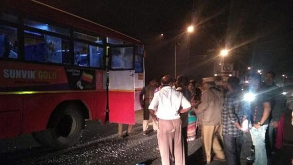 கர்நாடக அரசு பஸ்ஸை அடித்து நொறுக்கி பயணிகளிடம் அராஜகம்... யார் என தெரிந்தால் கோவப்படுவீர்கள்...