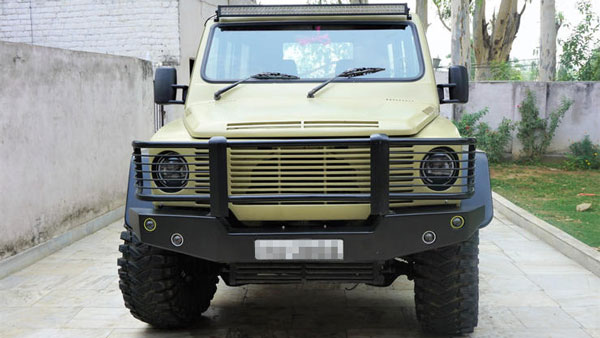 அந்தவகையில், சுமோவினை பென்ஸ் ஜி கிளாஸ் காராக தோன்றும் வகையில், புதிய வட்ட வடிவ முகப்பு விளக்கு பொருத்தப்பட்டுள்ளது. தொடர்ந்து, கஸ்டமைஸ் செய்யப்பட்ட பம்பரும் முன்பகுதியில் இணைக்கப்பட்டுள்ளது. இத்துடன், காரின் முகப்பு பகுதியில் உள்ள கிரில் அமைப்பு ஜி கிளாஸ் கார்களில் இருப்பதைப் போன்று காட்சியளிக்கின்றது.