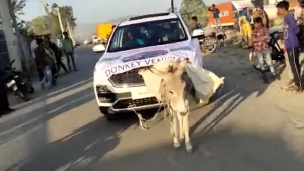 01. புதிய எம்ஜி ஹெக்டர் காரை கழுதையை வைத்து இழுத்த உரிமையாளர்