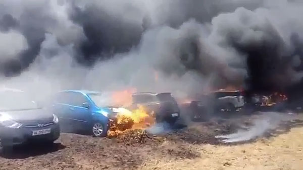 சனிக்கிழமை விடுமுறை தினம் என்பதால், ஆயிரக்கணக்கான பார்வையாளர்கள் அங்கு குழுமியிருந்தனர். இதனால் பார்க்கிங் ஏரியாவில் வாகனங்கள் நிரம்பி வழிந்தன. ஆனால் துரதிருஷ்டவசமாக திடீரென ஏற்பட்ட தீ விபத்தில் சுமார் 300 கார்கள் எரிந்து நாசமாயின.