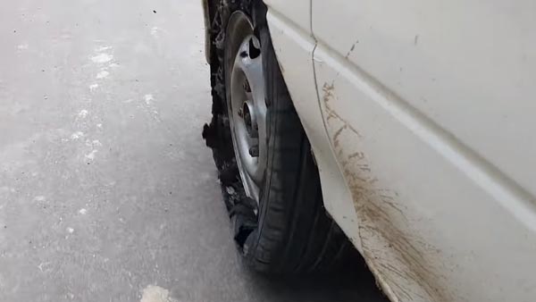 அத்துடன், வீடியோவின் இறுதியில் காரின் சக்கரம் முழுவதுமாக சேதமடைந்திருப்பதையும் நம்மால் காணமுடிகின்றது.