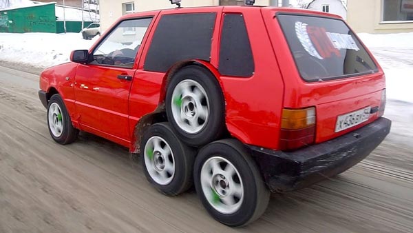 பார்ப்பதற்கு மட்டும் தான் இந்த கூடுதலான சக்கரங்கள் அழகாகவும் வித்தியாசமாக உள்ளன. மற்றப்படி என்ஜினின் ஆற்றல் முழுவதும் முன் சக்கரத்திற்கே செல்வதால் ஆஃப் ரோடுகளில் இந்த சக்கரங்களால் எந்த பயனும் இல்லை. ரஷ்யா போன்ற பனிசூழ் நாடுகளிலும் இந்த கஸ்டமைஸ்ட் கார் அவ்வளவு பொருத்தமானதாக இருக்காது.