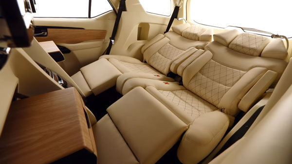 இந்த இருக்கையில் அமரும்போது கூடுதல் லக்சூரி அனுபவத்தை உணர வேண்டும் என்பதற்காக இரு இருக்கைகள் மட்டுமே பின் பக்கத்தில் சேர்க்கப்பட்டுள்ளது. அதாவது, மூன்று வரிசை அமைப்பாக இருந்த டொயோட்டா ஃபார்ச்சூனர் மாடிஃபிகேஷனுக்கு பின்னர் இரு வரிசை இருக்கைகளைக் கொண்ட காராக மாறியிருக்கின்றது. இதனால், பின் புறத்தில் அமர்பவர்களுக்கு கூடுதல் இடவசதி மற்றும் அதிக சொகுசான அனுபவம் கிடைக்கும் வாய்ப்பு அதிகரித்துள்ளது.