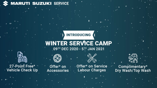 குளிர்காலத்தில் வாடிக்கையாளர்களின் வாகனங்கள் எந்தவித பிரச்னையும் இல்லாமல் சிறப்பான நிலையில் இருப்பதை உறுதி செய்ய வேண்டும் என்ற நோக்கத்துடன் மாருதி சுஸுகி நிறுவனத்தின் இந்த குளிர்கால சர்வீஸ் முகாம் அறிவிக்கப்பட்டுள்ளது. இது மாருதி சுஸுகி வாடிக்கையாளர்களுக்கு பயனுள்ளதாக அமையும்.