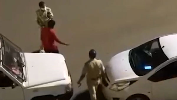 வீடியோவில் மூன்றுக்கும் மேற்பட்ட இளைஞர்கள் ஆட்டம் போட்டுக் கொண்டிருந்தது தெரிகின்றது. அப்போதே எதிர்பாராத விதமாக போலீஸாரின் ரோந்து வாகனம் வருகின்றது. இதைக் கண்ட அவர்கள் உடனடியாக காரை எடுத்துக் கொண்டு அங்கிருந்து கிளம்ப முயற்சிக்கின்றனர். ஆனால், அந்த போலீஸார்களோ இளைஞர்களை முன்னேறிச் செல்ல முடியாத வகையில் தங்களது வாகனத்தை முன்னிறுத்தினர்.