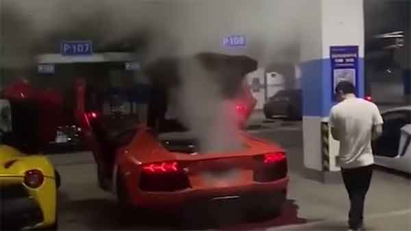 தொடர்ச்சியாக ஆக்சலரேஷனை விட்டு விட்டு அழுத்திய வண்ணம் இருந்தார். இந்த மாதிரியான சூழ்நிலையிலேயே காரில் இருந்து திடீரென புகையுடன் கூடிய வெடிப்பு சத்தம் வந்தது. இதனால் பதறிபோன லம்போர்கினி காரின் உரிமையாளர் உடனடியாக காரின் எஞ்ஜினை அனைத்து, பேனட்டையும் திறந்து விட்டார். இருப்பினும், எஞ்ஜினில் இருந்து ஆயில் கீழே வழி தொடங்கின.