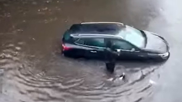 அந்தவகையில், மிக சமீபத்தில் சீனாவை கடும் மழை புரட்டிப் போட்டு சென்றது. இதுபோன்று ஓர் மழை வெள்ளத்திலேயே ஸ்காட்லாந்து தற்போது சிக்கியிருக்கின்றது. நாட்டின் பல்வேறு பகுதிகளில் மழை வெள்ளம் பெருக்கெடுத்து ஓடி வருகின்றது. இந்த மாதிரியான சூழ்நிலையில் தனது குடும்பத்துடன் காரில் வந்த ஓர் நபரே மழை வெள்ளத்தில் காரை ஓட்ட முடியாமல் சிக்கியிருக்கின்றார்.