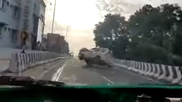 அவ்வாறு, அதிக வேகத்தில் மேம்பாலத்தைக் கடக்க முயன்ற மஹிந்திரா சைலோ காரே தற்போது விபத்தில் சிக்கியிருக்கின்றது. அக்கார் மேம்பாலத்தில் ஏறிக் கொண்டிருந்த மற்றொரு வாகனத்தை ஓவர்டேக் செய்யும்போது கட்டுப்பாட்டை இழந்து விபத்தில் சிக்கியது.