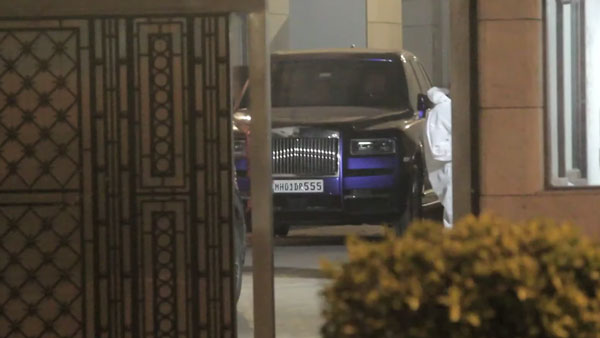 முகேஷ் அம்பானியின் அன்டிலியா இல்லத்தின் முன்பு கேமிராவின் சிக்கிய புதிய ரோல்ஸ் ராய்ஸ் கல்லினன் பிளாக் பேட்ஜ் சொகுசு கார்