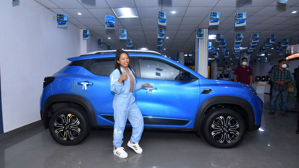 டோக்கியோ ஒலிம்பிக் போட்டியில், பளு தூக்குதலில் வெள்ளி பதக்கம் வென்று இந்தியாவிற்கு பெருமை தேடி தந்த மீராபாய் சானுவிற்கு, ரெனால்ட் இந்தியா நிறுவனம் கைகர் சப்-4 மீட்டர் காம்பேக்ட் எஸ்யூவி காரை தற்போது பரிசாக வழங்கியுள்ளது. ரெனால்ட் இந்தியா நிறுவனத்தின் சேல்ஸ் மற்றும் மார்க்கெட்டிங் பிரிவின் துணை தலைவரான சுதிர் மல்ஹோத்ரா, கைகர் காரின் சாவியை மீராபாய் சானுவிடம் ஒப்படைத்தார்.