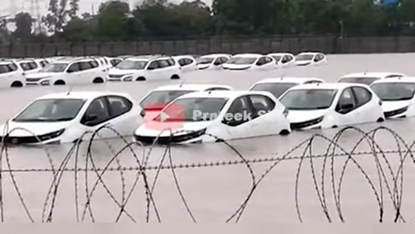 அவ்வாறு ஹரியானாவில் டீலர்ஷிப் ஒன்றின் வளாகத்தில் நிறுத்தி வைக்கப்பட்டு இருந்த டாடா கார்கள் மழைநீரில் பாதியளவிற்கு மூழ்கியுள்ளன. கீழுள்ள இதுகுறித்த வீடியோவில் ஹரியானாவில் பைபாஸ் சாலை ஒன்றிற்கு அருகில் உள்ள இந்த டீலர்ஷிப் வளாகம் முழுவதையும் மழைநீர் ஆக்கிரமித்துள்ளதை பார்க்க முடிகிறது.