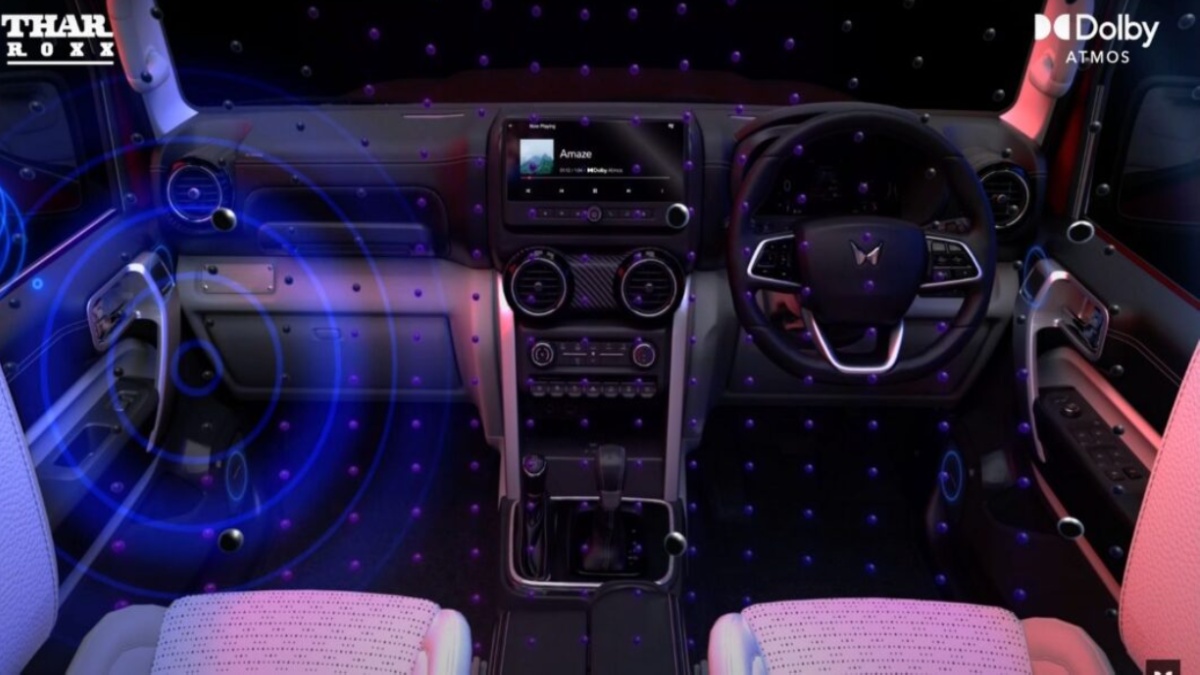 இன்றைய கால வாகனங்களில் டால்பி அட்மாஸ் சவுண்ட் சிஸ்டம் வழங்கப்படுவது வாடிக்கையாகிவிட்டது. இருப்பினும், 4-சேனல் டால்பி அட்மாஸ் சவுண்ட் சிஸ்டம் உலகிலேயே முதல் எஸ்யூவி வாகனமாக மஹிந்திரா தார் ராக்ஸுக்கு வழங்கப்பட்டுள்ளது. தார் ராக்ஸ், ஆஃப்ரோடு அம்சங்களுடன் இருக்கிறது. இந்த கார் ரக்கட் லுக் உடன் எந்த சாலையிலும் செல்லும் வகையில் உருவாக்கப்பட்டுள்ளது. தற்போது இந்த காரில் சரவுண்ட் சவுண்ட் சிஸ்டம் வழங்கப்பட்டுள்ளது. இந்த கார் எப்படி திருப்பங்களில் துல்லியமாக செயல்படுமே அதே போல இந்த சவுண்ட் சிஸ்டமும் மிக துல்லியமாக இருக்கும் என தெரிவிக்கப்பட்டுள்ளது.