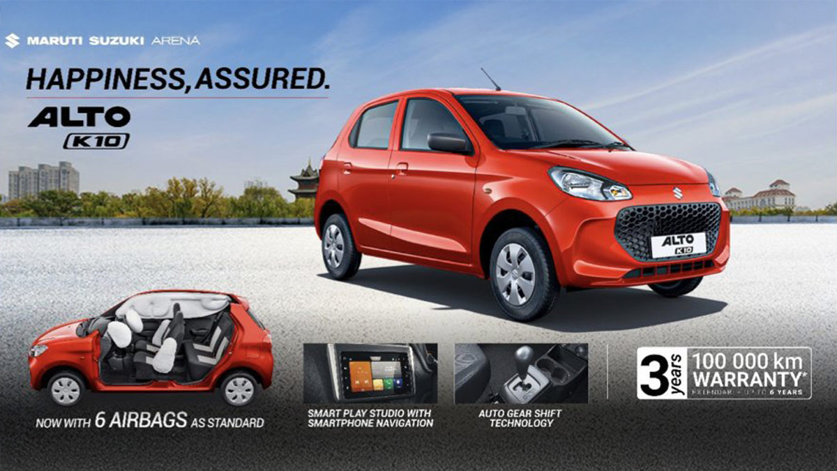 ஆல்டோ கே10 கார் மாடலின் ஆரம்ப நிலை தேர்விலேயே ஆறு ஏர் பேக்குகள் இடம் பெற்றிருக்கும் என்பது குறிப்பிடத்தகுந்தது. இதனால் ஆல்டோ கே10 கார் மாடலில் திரும்பிய பக்கமெல்லாம் காற்று பலூன்கள் இருக்கும் சூழல் தற்போது உருவாகி உள்ளது. இது ஆல்டோ கே10 கார் மாடலை வாங்குவோருக்கு கூடுதல் நம்பிக்கையை தரும் வகையில் அமைந்திருக்கின்றது.