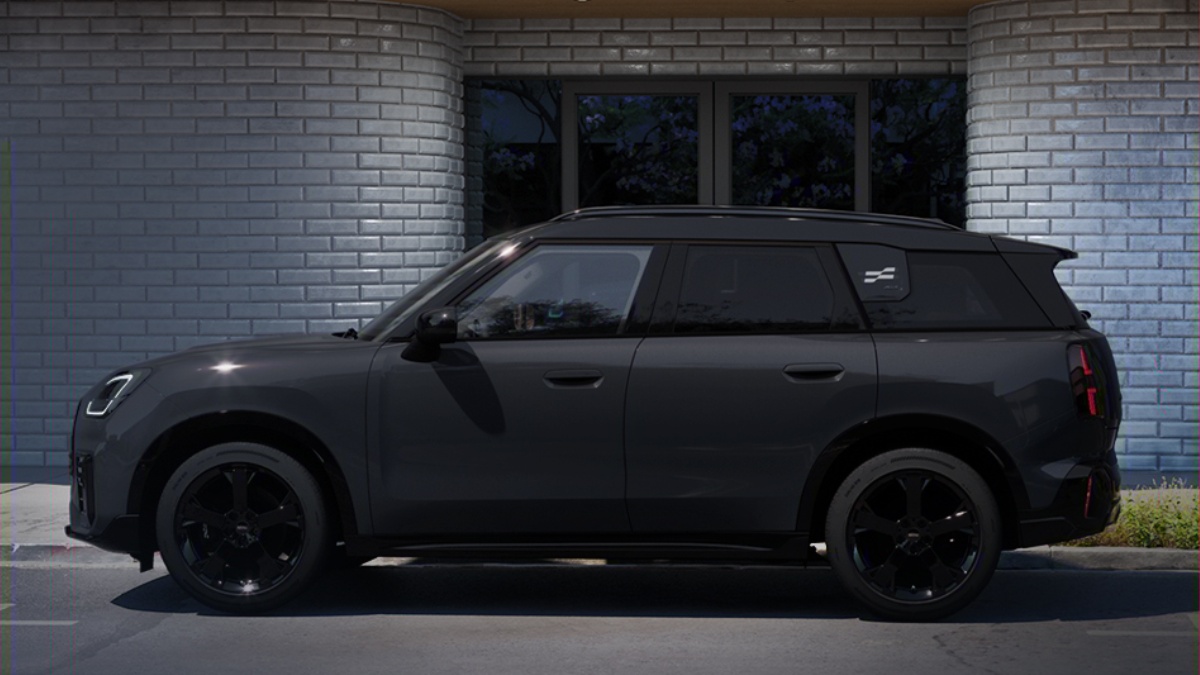 இதில், லெஜண்ட் கிரே நிற ஆப்ஷனில் கருப்பு நிரத்திலான ஸ்ட்ரிப்ஸ் கிடைக்கும். வழக்கமான மினி கண்ட்ரீமேன் எலக்ட்ரிக் காருடன் ஒப்பிடுகையில், புதிய ஜேசிடபிள்யூ வெர்சனில் அதற்கேற்ப பிரத்யேகமான கட்ட கட்டமான டிசைனை பெறலாம். எலக்ட்ரிக் கார் என்பதால், முன்பக்க கிரில் பகுதி மூடப்பட்டதாக உள்ளது. காரின் அலாய் சக்கரங்களும் கருப்பு நிறத்தில் வழங்கப்பட்டுள்ளன.