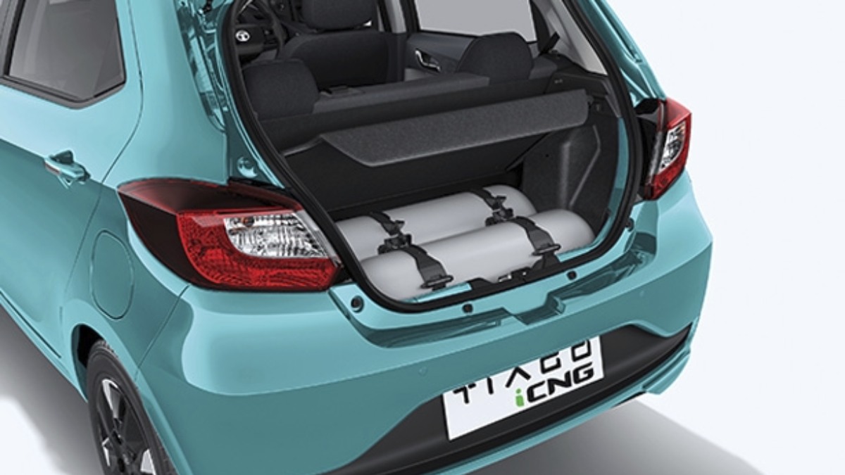 டாடா டியாகோ ஐ-சிஎன்ஜி ஏஎம்டி (Tata Tiago iCNG AMT): டாடா மோட்டார்ஸ் விற்பனை செய்வதிலேயே விலை குறைவான ஆட்டோமேட்டிக் சிஎன்ஜி கார் இதுவாகும். ரூ.7.23 லட்சத்தில் இருந்து ரூ.8.10 லட்சம் வரையில் இந்த ஹேட்ச்பேக் (Hatchback) ரக சிஎன்ஜி காரின் எக்ஸ்-ஷோரூம் விலைகள் உள்ளன. இந்த சிஎன்ஜி காரில் இரட்டை-சிலிண்டர் டெக்னாலஜியை டாடா நிறுவனம் தனது தொழிற்சாலையிலேயே பொருத்தி வழங்குகிறது.