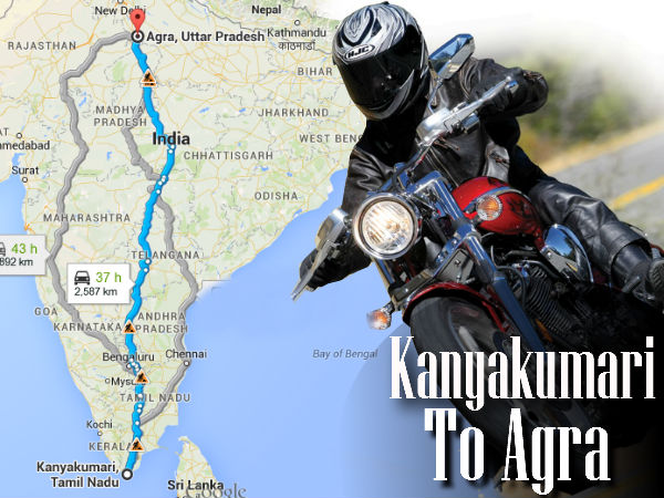 இவர் கோவையிலுள்ள கற்பகம் பொறியியல் கல்லூரியில் பயின்று வருகிறார். இந்த நிலையில், சாலை பாதுகாப்பு பற்றிய விழிப்புணர்வை ஏற்படுத்துவதற்காக பிரத்யேக பயணத் திட்டத்தை வகுத்தார். அதன்படி, கடந்த 1ந் தேதி கன்னியாகுமரியிலிருந்து மோட்டார்சைக்கிளில் புறப்பட்ட அவர், ஜூன் 3ந் தேதி உத்தரபிரதேச மாநிலம், ஆக்ராவை அடைந்தார்.