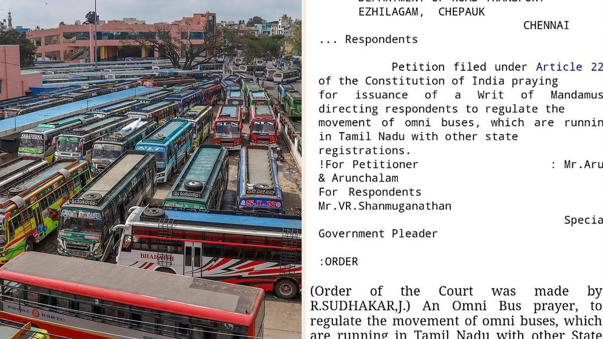 அதே நேரம் ஆம்னிபஸ் உரிமையாளர்கள் சார்பில் தாங்கள் வசூலிக்கும் கட்டணம் சராசரியாக பார்த்தால் பெரிய அளவில் லாபமான கட்டணமாக இருக்காது. செலவுகளை பார்க்கும்போது கட்டணம் சரியாக தான் வசூலிக்கிறோம் என விவாதம் நடத்தி வருகின்றனர். இந்நிலையில் தமிழகத்தில் இயங்கும் ஆம்னிபஸ் குறித்த அதிர்ச்சி தகவல் ஒன்றை சென்னை உயர்நீதிமன்றத்தின் மதுரை கிளை வழக்கறிஞர் அருண்சுவாமிநாதன் என்பவர் தனது பேஸ்புக் பக்கத்தில் பதிவு செய்துள்ளார். இது தற்போது பெரும் அதிர்வலைகளை ஏற்படுத்தியுள்ளது.