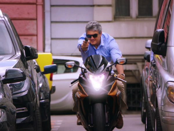 டீசரின் இறுதியில் அஜித் ஒரு கோல்டன் கலரில் இருக்கக்கூடிய பைக்கை விறுவிறுவென ஓட்டி யாரையோ சுடுவார். அந்த காட்சியில் அஜித் பயன்படுத்தும் மாடல் சுசுகி ஜி.எஸ்.எக்ஸ் ஆர் 1000 மோட்டார் சைக்கிளாகும்.
