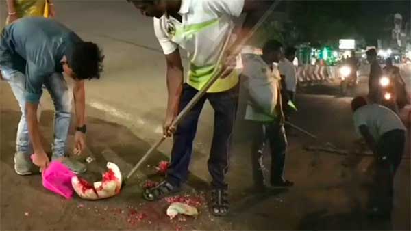 எனினும் சேவகன் எனும் அமைப்பை சேர்ந்த இளைஞர்கள் மாலை 6 மணி முதல் இரவு 12 மணி வரை சேலம் மாநகரில் வீதி வீதியாக வலம் வந்து சாலையில் உடைக்கப்பட்ட திருஷ்டி பூசணி காய்களை அகற்றினர். சுமார் 25 கிலோ மீட்டர் சுற்றளவில் உடைக்கப்பட்ட பூசணி காய்கள், சேவகன் அமைப்பை சேர்ந்த இளைஞர்கள் சார்பில் அகற்றப்பட்டன.