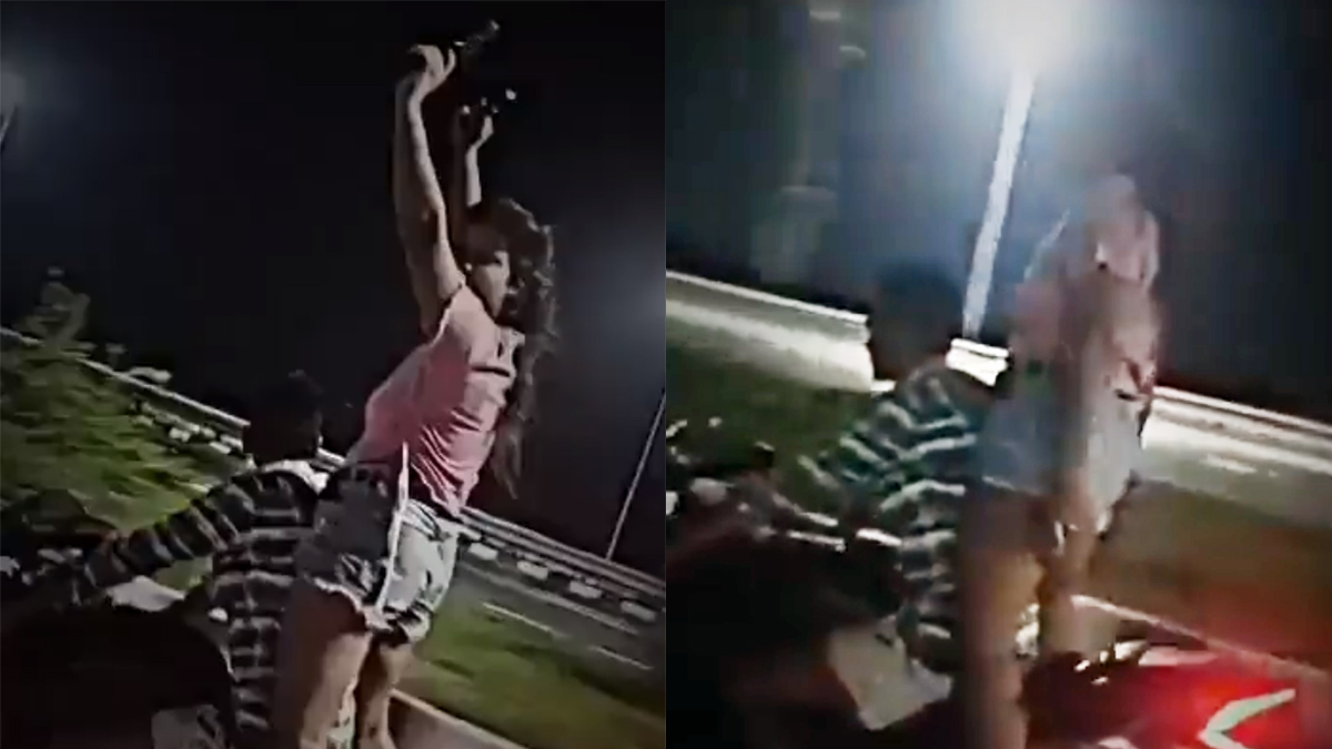 அப்படி இருக்கும்போது பின்னால் அமர்ந்திருந்த இளம்பெண் திடீரென எழுந்து நின்று கொண்டே பயணம் செய்ய ஆரம்பிக்கிறார். பைக்கில் இதுபோன்று பயணம் செய்வது மிகவும் ஆபத்தானது. திடீரென நிலைதடுமாறி கீழே விழ நேரிட்டால், படுகாயங்களோ அல்லது உயிரிழப்போ ஏற்படலாம் என்பதை அந்த பெண் உணரவில்லை.