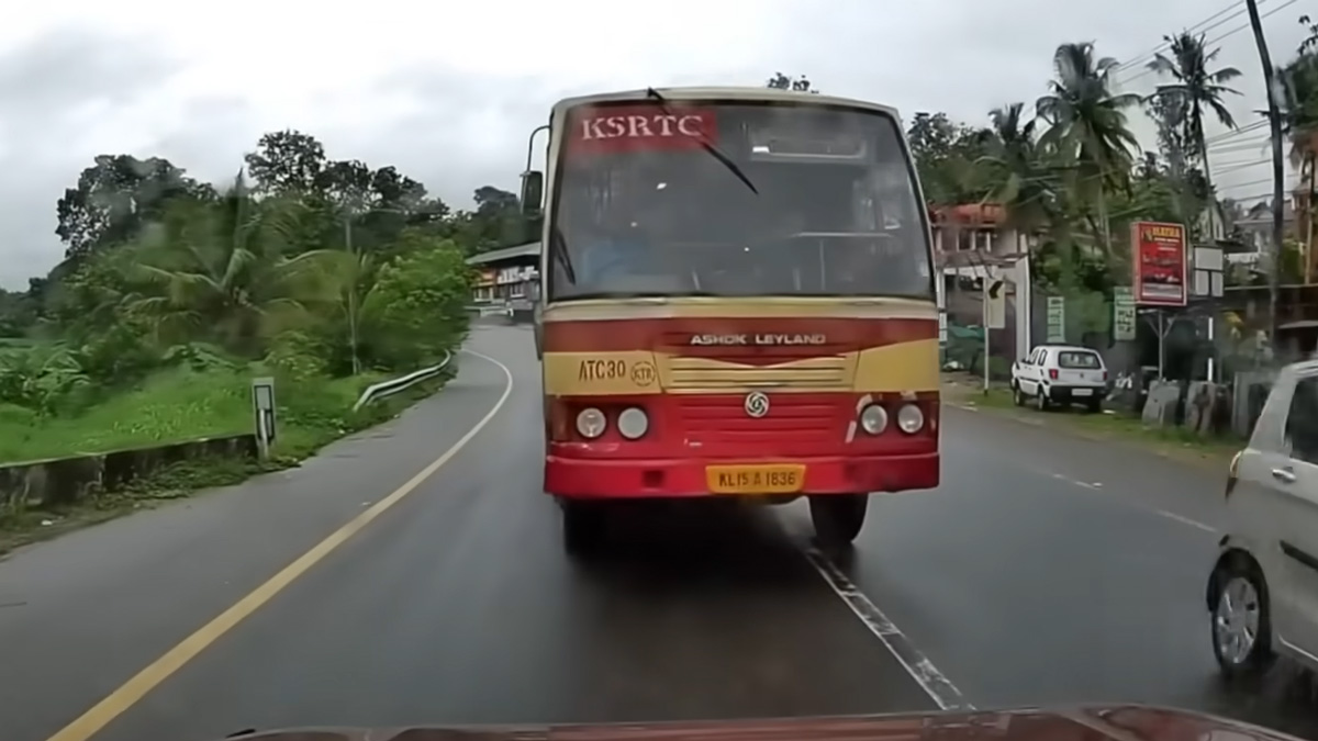 கேரளாவில் நடந்துள்ள சம்பவத்தை பொறுத்தவரை, எதிர்திசையில் மஹிந்திரா தார் எஸ்யூவி கார் வருவதை, பஸ் டிரைவர் நிச்சயம் பார்த்திருப்பார் என்றுதான் நாங்கள் கருதுகிறோம். இருந்தாலும் கூட அவர் 'ஓவர்டேக்' செய்யும் முயற்சியை கைவிடாமல் தொடர்ந்து முன்னேறி வருகிறார். இது போன்ற செயல்கள் சாலை விபத்துக்களுக்கு வழிவகுக்கலாம்.