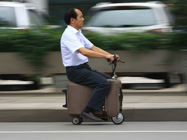 சீனாவின் மத்திய பகுதியில் உள்ள ஹூனான் மாகாணத்தை சேர்ந்த விவசாயி ஹி லியான்கய். வாகனங்கள் மீது தீராத ஆர்வம் கொண்ட இவர் தனது சொந்த முயற்சியில் சூட்கேஸிலேயே ஒரு ஸ்கூட்டரை உருவாக்கியுள்ளார்.