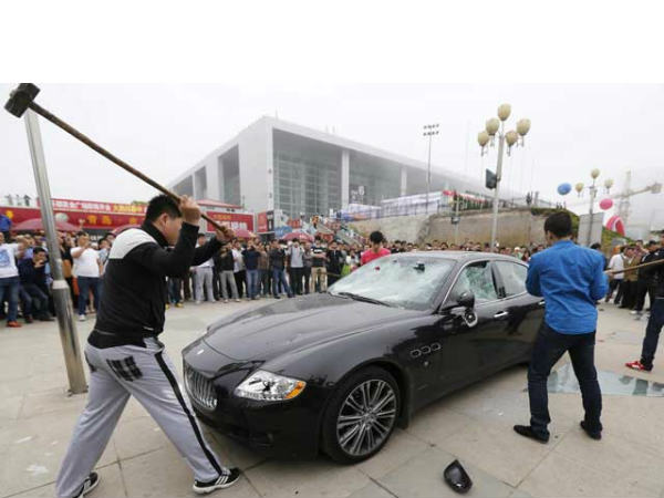 ரிப்பேரை சரிசெய்யாத கோபத்தில் நடுரோட்டில் மஸராட்டி காரை உடைத்த சீனர்!