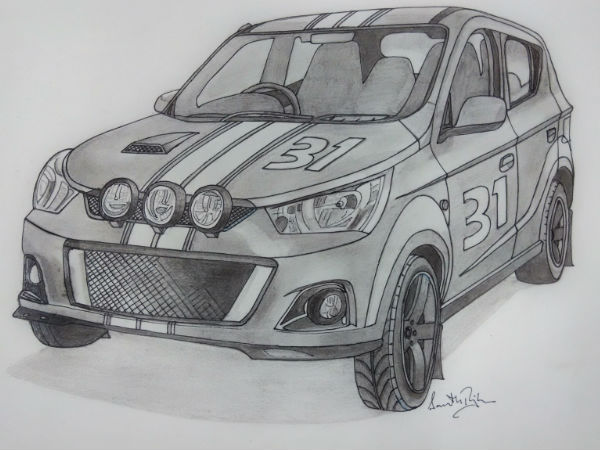 இந்த நிலையில், மாருதி ஆல்ட்டோ கே10 காரை ராலி ஸ்போர்ட்ஸ் ஸ்டைலில் மாற்றினால் எப்படியிருக்கும் என்பதை மனதில் வைத்து எமது ஆங்கில எடிட்டர் சந்தோஷ் ராஜ்குமார் பென்சில் ஸ்கெட்ச் வரைந்துள்ளார். சந்தோஷ் வரைந்த இந்த பென்சில் ஸ்கெட்ச்சில் புதிய அவதாரம் எடுத்திருக்கும் ஆல்ட்டோ கே10 காரை ஸ்லைடரில் காணலாம்.