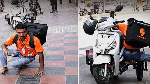 கர்நாடகாவை சேர்ந்த மாற்றுத்திறனாளி நபரான இவர் தனது நான்கு சக்கர ஸ்கூட்டரில் ஸ்விகி செயலின் மூலமாக உணவு டெலிவிரி வேலையை பார்த்து வருகிறார். இவரை பற்றி 'ரியல் ஹீரோ' என்ற பெயரில் இணையத்தில் வெளியிடப்பட்டுள்ள வீடியோவை தான் மேலே காண்கிறீர்கள். இதற்கு இந்த நபருக்கு எவரது உதவியும் தேவைப்படுவது இல்லை. பக்கவாட்டில் கூடுதலாக இரு சக்கரங்கள் பொருத்தப்பட்ட ஸ்கூட்டர் அவருக்கு இந்த வேலைக்கு போதுமானதாக உள்ளது.