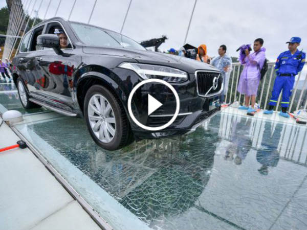2 டன் வால்வோ காருக்கும் அசங்காத கண்ணாடி பாலம்... !!