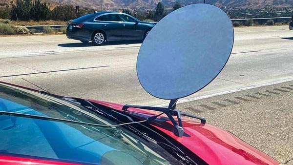 இந்த வரிசையில் அமெரிக்காவில் தற்போது வித்தியாசமான சம்பவம் ஒன்று நிகழ்ந்துள்ளது. கலிபோர்னியா நெடுஞ்சாலை ரோந்து துறையை சேர்ந்த அதிகாரி ஒருவர் சமீபத்தில் டொயோட்டா ப்ரையஸ் கார் ஒன்றை தடுத்து நிறுத்தினார். அந்த காரின் பானெட்டில் சேட்டிலைட் டிஸ் பொருத்தப்பட்டிருந்ததுதான் இதற்கு காரணம்.