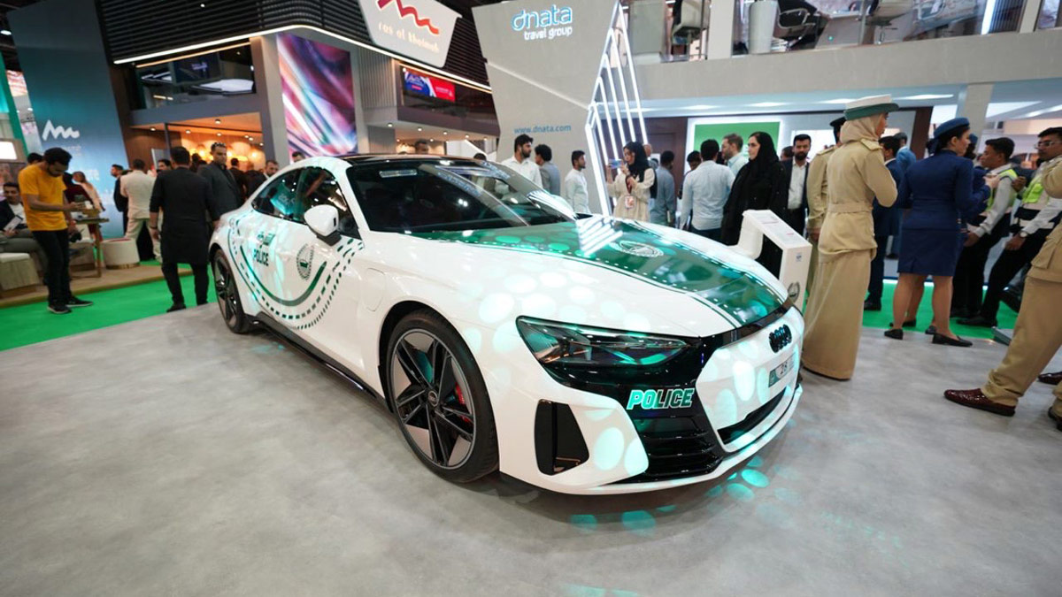 இந்த வரிசையில் புதியதாக இணைந்திருப்பது, ஆடி ஆர்.எஸ் இ-ட்ரான் ஜிடி எலக்ட்ரிக் கார் ஆகும். துபாய் போலீஸாரின் படையில் இணைந்துள்ள ஆடி ஆர்.எஸ் இ-ட்ரான் ஜிடி கார் போலீஸ் வாகனம் என்பதை வெளிப்படுத்தும் விதமாக வெள்ளை மற்றும் பச்சை நிற வ்ராப்-ஆல் அலங்கரிக்கப்பட்டுள்ளது. இந்த போலீஸ் வ்ராப் ஒட்டப்பட்ட ஆடி ஆர்.எஸ் இ-ட்ரான் ஜிடி கார் முதன்முதலாக துபாயில் நடைபெற்றுள்ள அரேபியன் டிராவல் மார்கெட் கலந்தாய்வு கூட்டத்தில் பொது மக்களின் பார்வைக்கு நிறுத்தப்பட்டுள்ளது.